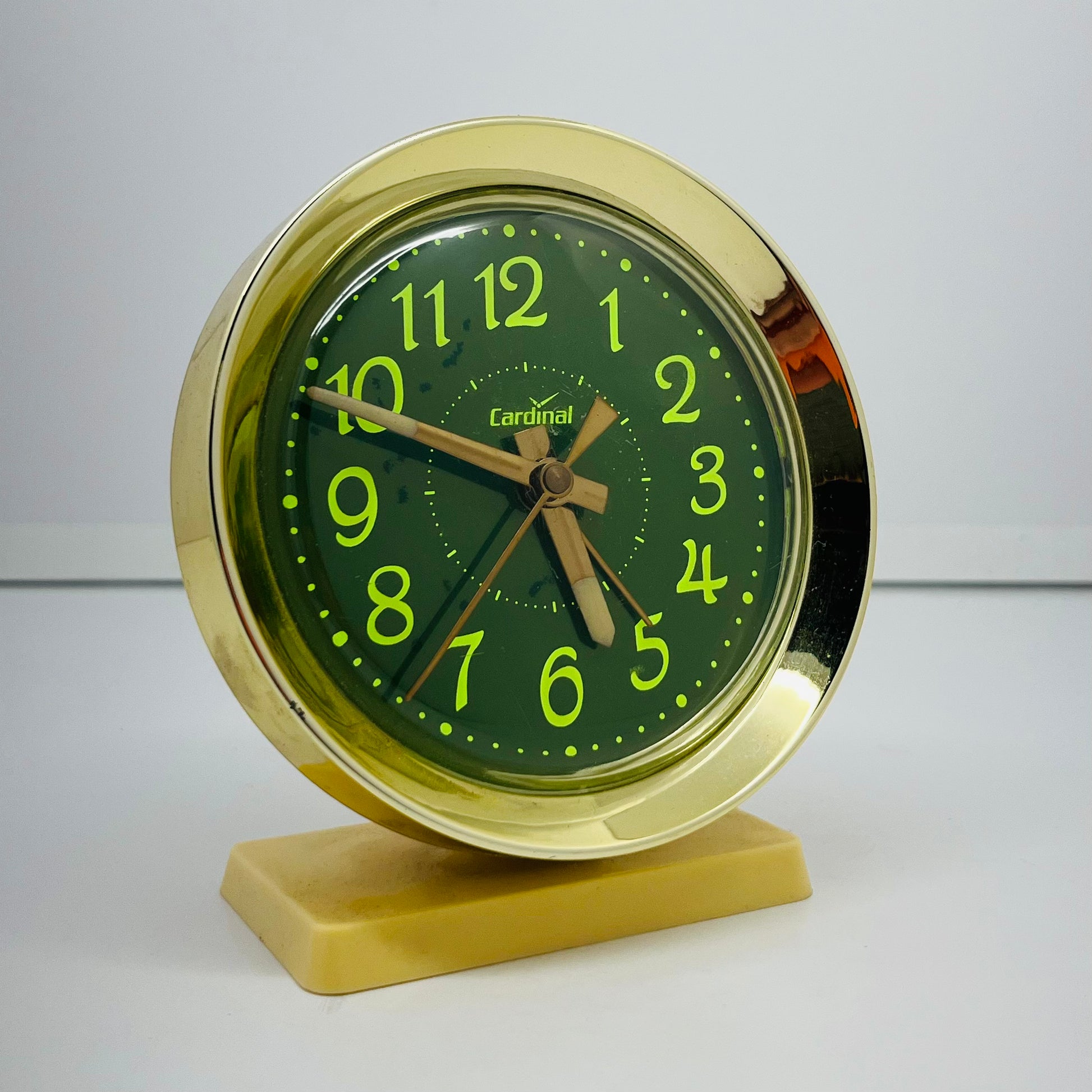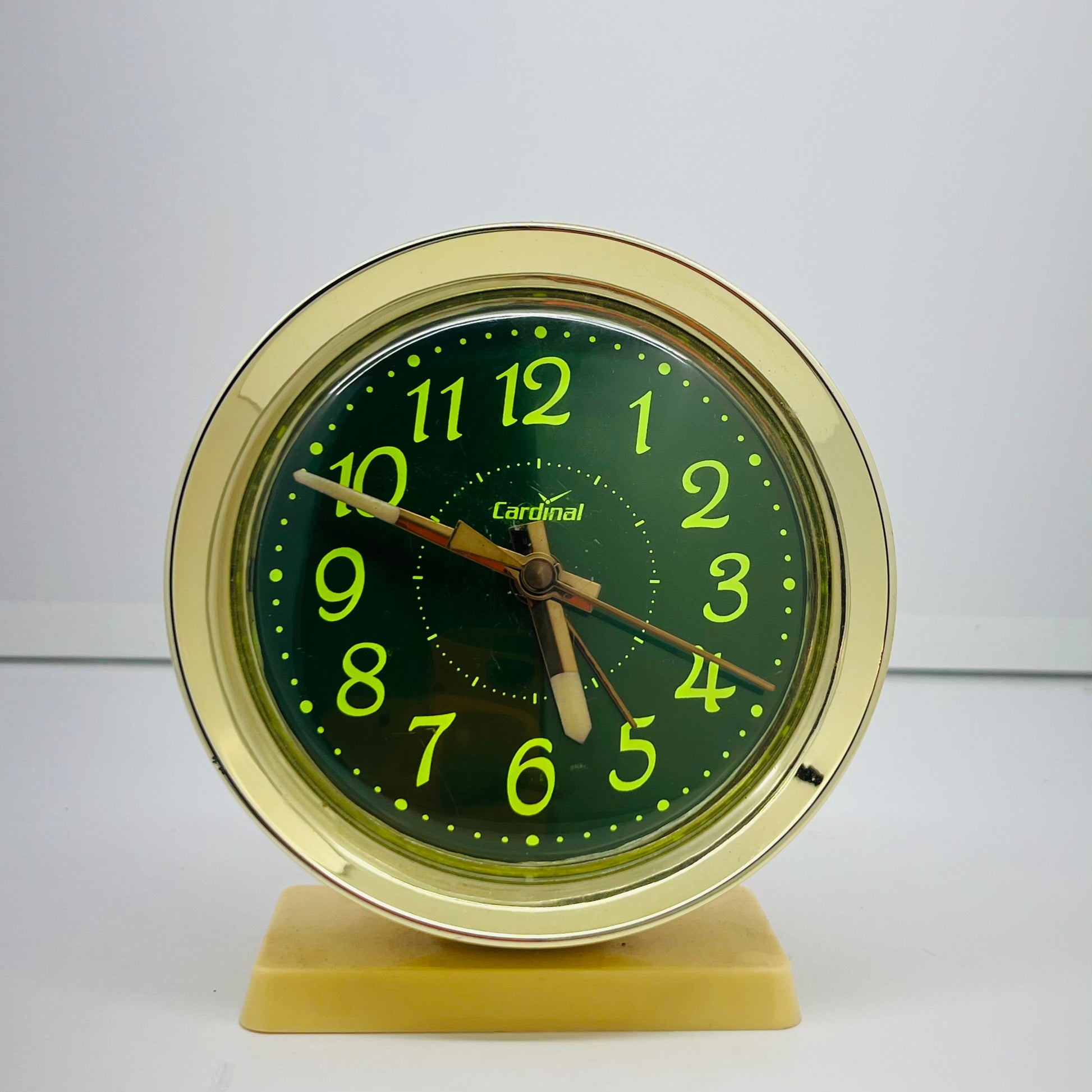 A nostalgic throwback to a time when clocks needed winding, this vintage Cardinal alarm clock is in perfect working order and sure to wake you up in the morning. Featuring glow-in-the-dark numbers and hands, it ensures easy time-telling even in the middle of the night. Wake up in style!